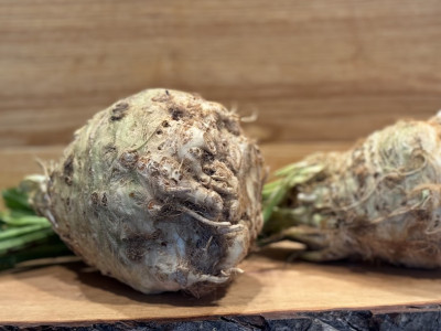 Frische Sellerieknollen aus saisonalem Anbau.